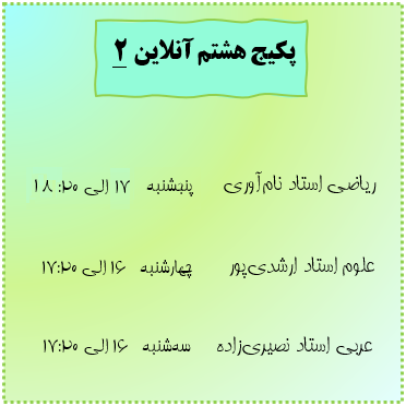 پکیج هشتم آنلاین 2 (ریاضی-علوم-عربی)
