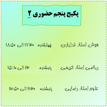 پکیج پنجم حضوری 2 (هوش استاد خدایاری-ریاضی-علوم)