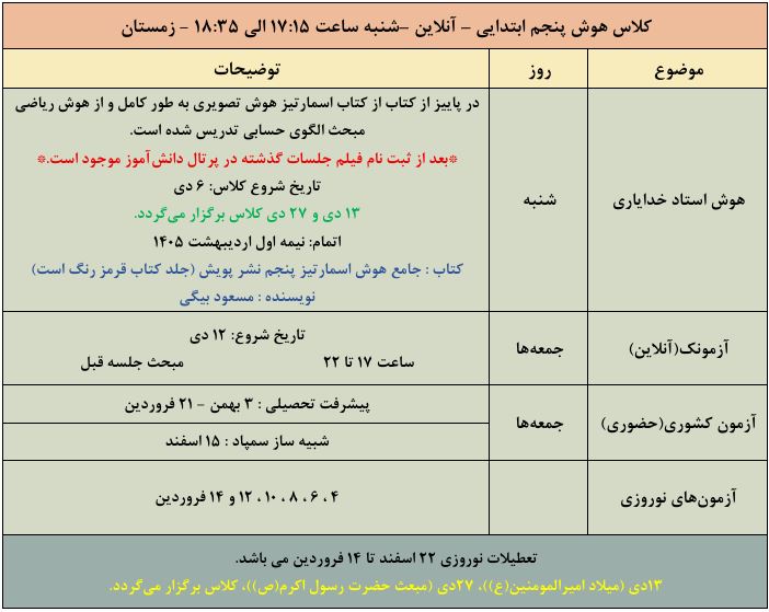 کلاس هوش پنجم آنلاین – شنبه (استاد خدایاری)