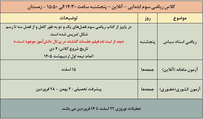کلاس ریاضی سوم آنلاین – پنجشنبه (استاد سیاس)
