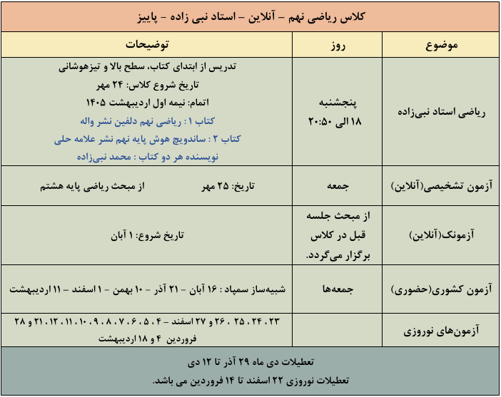 کلاس ریاضی نهم آنلاین – پنجشنبه (استاد نبی زاده)