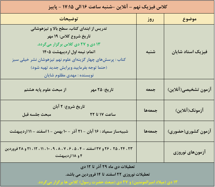 کلاس فیزیک نهم آنلاین – شنبه (استاد شایان)