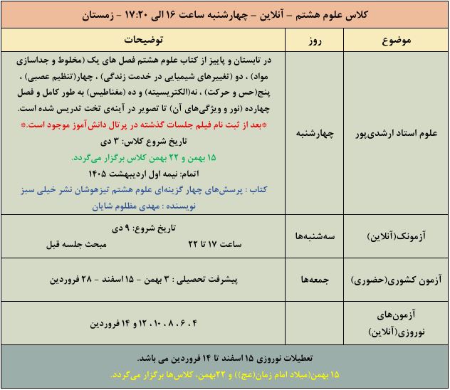 کلاس علوم هشتم آنلاین – چهارشنبه (استاد ارشدی پور)